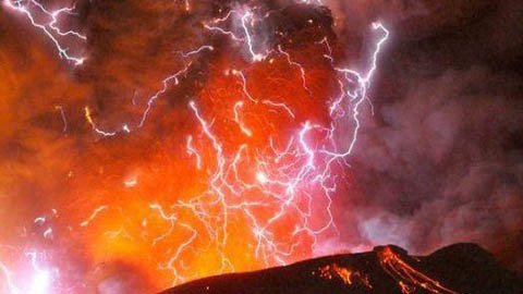 hiện tượng sét đánh trên miệng núi lửa có thể do một phần macma phun ra từ núi lửa tiếp xúc